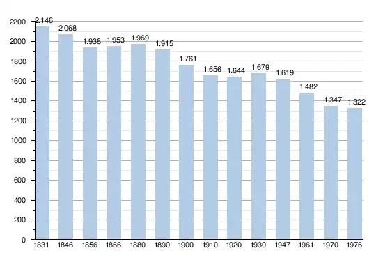 - Sources : INS, Rem. : 1831 jusqu'en 1970 = recensements, 1976 = nombre d'habitants au 31 décembre.