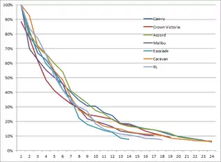 Comparé à d'autres modes populaires de transport de passagers, en particulier les autobus ou les trains, l'automobile a un coût relativement élevé par passager-distance parcourue[3]. Les automobilistes au Royaume-Uni semblent dépenser sur sa voiture une moyenne d'environ un tiers de leur salaire net moyen[4], tandis que les automobilistes au Portugal semblent dépenser moitié de leur salaire net[5]. Cette situation se reflète dans la plupart des autres pays occidentaux. Pour le propriétaire de la voiture, la dépréciation constitue environ la moitié du coût total d'une voiture. L'automobiliste typique sous-estime ce coût fixe par grande marge, ou même l'ignore complètement[6].