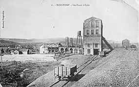 La cokerie fournit plus de 130 tonnes de coke par jour à partir de 175 tonnes de charbon gras. Le coke incandescent est déversé sur un plan incliné où il est refroidi par des jets d'eau avant d'être déversé dans des wagons. Cette distillation de la houille permet de récupérer du benzol, du sulfate d'ammonium (pour l’agriculture, dans des ateliers spécifiques)[3], du goudron et du gaz distillé utilisé pour chauffer les fours[1]. La cokerie ferme ses portes en 1933.