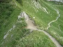 Le col de l'Oulettaz avec le sentier de randonnée menant au refuge de la Pointe Percée – Gramusset.