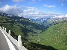 Photo prise depuis la route du col du Grimsel en direction du col de la Furka et du glacier du Rhône. | |||||
