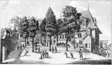 En janvier 1558, les travaux démarrent sous la direction de Pernet Desfosses[4]. Deux mois plus tard, les travaux commencent et, dès le début du mois de novembre, les cours débutent dans le bâtiment central. Le porche de ce bâtiment présente la caractéristique d'une construction de style Renaissance présentant, dans ses ogives, une persistance de la tradition médiévale. Les clés de voûte portent pour leur part des inscriptions en hébreu, grec, français en allemand. Le bâtiment est totalement achevé durant l'année 1559.