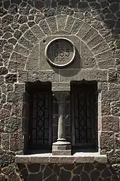 Gargouille restaurée et restes du blason remontant à l'époque britannique.