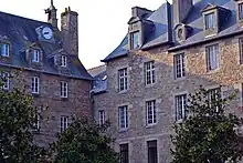 Toutefois le Grand Séminaire de Saint-Pol-de-Léon, fondé en 1680[22], qui formait et sélectionnait les étudiants entrant à l'Université de Paris, continue après 1763 de fonctionner dans le bâtiment que Mgr de la Bourdonnaye lui avait fait élever en 1708[23], aujourd'hui siège du lycée privé, 2 rue Cadiou. Depuis 1681, il accueille dans une annexe, actuel 4 rue Verderel, un collège non universitaire, l'École de Léon fondée en 1580[24] par Mgr de Neufville sous l'invocation de Kelou Mad au lieu-dit Prat Cuic[25], à la sortie ouest de la ville, et ouvert aux enfants de l'aristocratie ou de la bourgeoisie qui ne se destinent pas nécessairement à la prêtrise. L'enseignement des mathématiques y avait une place réservée.