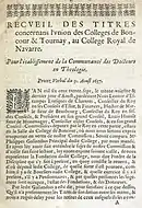 Recueil des titres concernant l'union des collèges de Boncourt et de Tournai au collège royal de Navarre (1637).