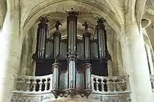 Le buffet d'orgue, en chêne et tilleul, est constitué d'un grand corps à 5 tourelles et d'un positif à 3 tourelles[35]. La console, indépendante et tournée vers le chœur, comporte deux claviers manuels (Grand Orgue et Récit) et un pédalier droit[34]. L'orgue est classé au titre d'objet aux monuments historiques le 3 septembre 1971 pour le buffet et le 25 septembre 2000 pour la partie instrumentale[36].