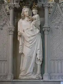 Dans la chapelle des fonts baptismaux se trouve un groupe sculpté de trois statues en pierre calcaire datant du XVIe siècle[12]. L'une représente Saint Étienne tenant les pierres de sa lapidation dans sa tunique, et la deuxième figure Saint Jean. Cette dernière est à rapprocher de la Madeleine de Génicourt-sur-Meuse, par son traitement complexe et varié des drapés, la finesse du visage et la dynamique et l'élégance générale[28]. La troisième statue, L’Éducation de la Vierge[12], représente Sainte Anne enseignant à sa fille Marie. Le 3 septembre 1971, le groupe sculpté est classé au titre d'objet aux monuments historiques[29].