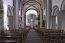 L'église originale, avec un westwerk monumental, est terminée avant l'an mille. Le westserk est reconstruit dans la première moitié du XIe siècle, après qu'un incendie eut détruit le premier édifice. Le chevalier Walther, frère d'Anno II, archevêque de Cologne, est enterré dans la crypte en 1075. C'est au cours de la troisième phase de la construction que sont érigées les ailes voûtées du transept, avec la chapelle Saint-André dans le bras nord. Le transept est agrandi et le westwerk reconstruit avec aussi une crypte secondaire, une sacristie et un cloître attenant au transept sud. Le maître-autel est consacré le par l'archevêque Frédéric Ier. La chapelle Saint-Étienne est consacrée en 1149.