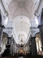Le bâtiment actuel a pour dimensions une longueur de 112 m sur 42 m de largeur et une hauteur des voûtes à 25 m. Il a été dessiné par Antoine-Joseph Lefebvre, architecte de la ville, mais certaine source attribue les plans à Brissy, architecte à Bruxelles.