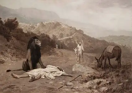 Le Prophète désobéissant | Jean-Léon Gérôme | Vers 1895 | Huile sur toile, grisaille | 50 × 62 cm | Achat avec l’aide du Fonds régional d’acquisition des musées en 1994 | Salle Gérôme | [1],[4] |