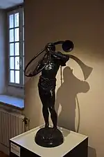 Gladiateur jouant du cor | Jean-Léon Gérôme | vers 1889 | Plâtre patiné bronze noir | h. 97 cm | Don de l’artiste à la Ville de Vesoul | Salle Gérôme | [1] |