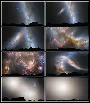 La collision entre la galaxie d'Andromède et la Voie lactée est la coalescence qui, selon les observations actuelles, se produira dans approximativement 4,6 milliards d'années entre les deux plus grandes galaxies du Groupe local, la Voie lactée — qui contient le Système solaire, dont la Terre fait partie — et la galaxie d'Andromède[2],[3],[4]. Cet évènement devrait aboutir à la fusion des deux galaxies en une nouvelle galaxie plus grande, une géante elliptique.