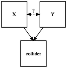 L'existence d'un collisionneur dans un modèle graphique fait que le chemin entre les deux variables qui influencent le collisionneur est bloqué[2],[3]. Ainsi, la présence du collisionneur ne permet pas de déterminer une association inconditionnelle entre les deux variables.