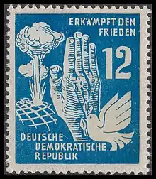 Au printemps de la même année, la colombe de Picasso est apposée sur tous les murs des villes d'Europe. Par la suite, le symbole sera abondamment utilisé dans la propagande du Mouvement de la paix, en particulier afin d'illustrer les affiches des congrès du Conseil mondial de la paix. La contre-propagande anticommuniste de l'officine Paix et Liberté détournera l'image de la colombe en la transformant en char d'assaut soviétique qu'elle nomme Paloma, mot qui signifie « colombe » en espagnol.
