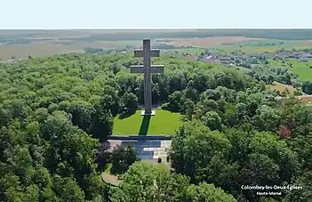 Depuis 1972, sur le territoire de la commune, se trouve le mémorial Charles-de-Gaulle. Visible de très loin, une monumentale croix de Lorraine issue des carrières de granit rose de La Clarté en Perros-Guirec s'élève[9], symbole de la France libre. Financée par souscription nationale, elle a été érigée du 4 avril au sur la « Montagne » (397 mètres d'altitude), emplacement le plus élevé du village. Le monument, œuvre des architectes Marc Nebingen et Michel Mosser, a été inauguré par le président de la République Georges Pompidou le , jour du trente-deuxième anniversaire du célèbre Appel à la Résistance lancé sur les ondes de la BBC par le général. Il mesure 44,30 mètres de haut pour 950 tonnes.