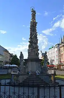 La colonne est située dans un petit square et commémore la gratitude envers Marie pour la fin de l'épidémie de peste de 1709 et 1710. Elle a été érigée à l'endroit de la potence médiévale à Fő utca (rue principale, maintenant appelée Hlavná ulica) en 1723. La légende locale veut que les reliques de Saint-Valentin soient cachées sous la structure.