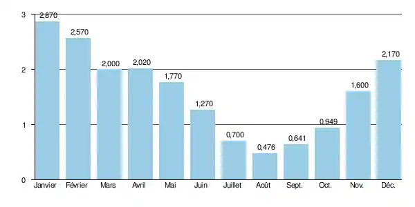 À l'étiage le VCN3 peut chuter jusque 0,110 m3, en cas de période quinquennale sèche, soit 110 litres par seconde.