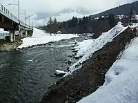 Le dénivellement de la rive gauche est très escarpé, formé par de la pierre schisteuse, couvert par une végétation de noyers et de chênes dans le bas et de conifères plus haut.
