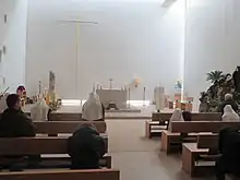 Les frères et sœurs de la Famille Saint-Jean ont fait le même choix liturgique pour leurs offices religieux : une liturgie sobre d’inspiration monastique et grégorienne mais en langue vernaculaire[42], essentiellement composée pour sa partie française par Magdalith.