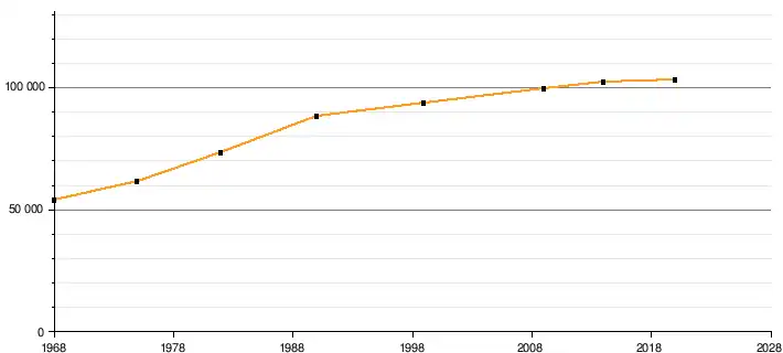 Le taux de personnes d'un âge inférieur à 30 ans (37,7 %[7]) est supérieur au taux national (35,5 %[9]) et au taux départemental (35,2 %[8]). Le taux de personnes d'un âge supérieur à 60 ans (22,4 %[7]) est inférieur au taux national (25,9 %[9]) et au taux départemental (25,5 %[8]).
