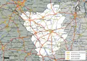 Située au nord-ouest du département des Deux-Sèvres, la communauté d'agglomération du Bocage Bressuirais regroupe 33 communes et présente une superficie de 1 318,8 km2[6].