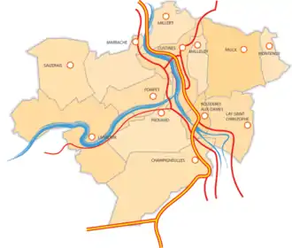 Traversé par de nombreux axes de communication (TGV, réseau autoroutier et fluvial) le Bassin de Pompey[2] dispose d’une situation privilégiée au cœur de la métropole lorraine, à proximité des agglomérations de Nancy et de Metz.