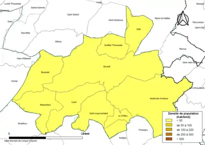| Saint-Loup-Lamairé | 79268 | Lupéens | 21,8 | 1 011 (2021) | 46 |