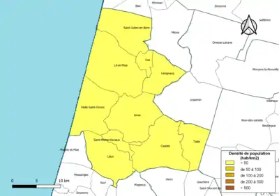 | Lit-et-Mixe | 40157 | Litois | 112,95 | 1 690 (2021) | 15 |