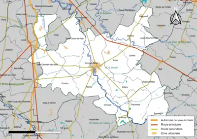 Carte de la communauté de communes Le Dunois (Cher) au .