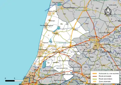 Carte des densités de population (millésimée 2016) des communes de la communauté de communes de Maremne-Adour-Côte-Sud. Composition en communes au [2].