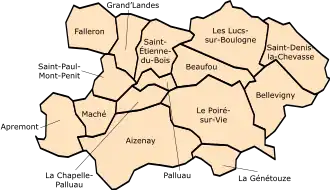 | 2 | Apremont, Beaufou, La Chapelle-Palluau, Falleron, La Genétouze, Maché, Palluau et Saint-Étienne-du-Bois |