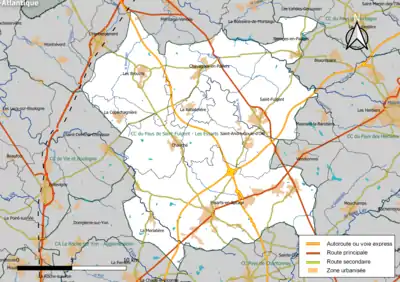 Située au centre-nord-est du département de la Vendée, dans un territoire marqué du point de vue paysager par le Bocage, la communauté de communes du Pays de Saint-Fulgent - Les Essarts regroupe 10 communes et s'étend sur 324,7 km2[9].