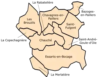 | 2 | Bazoges-en-Paillers, La Copechagnière, La Merlatière, La Rabatelière et Saint-André-Goule-d’Oie |