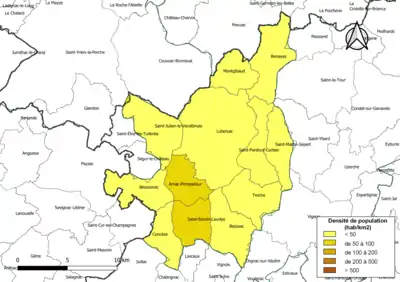 | Arnac-Pompadour | 19011 | Pompadours | 15,09 | 1 160 (2021) | 77 |