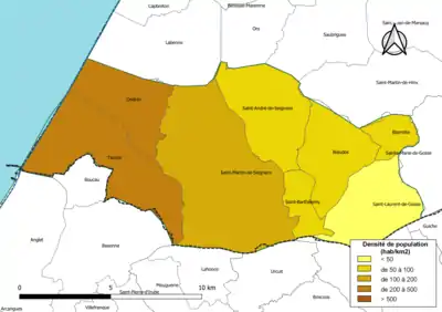 | Saint-André-de-Seignanx | 40248 | Saint-Andrésien | 19,49 | 1 881 (2021) | 97 |