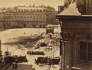 « La Commune de Paris, considérant que la colonne impériale de la place Vendôme est un monument de barbarie, un symbole de la force brute et de la fausse gloire, une affirmation du militarisme, une négation du droit international, une insulte permanente des vainqueurs aux vaincus, un attentat perpétuel à l'un des trois grands principes de la République française, la fraternité, décrète : La colonne de la place Vendôme sera démolie[23]. »