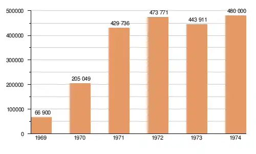 Production de KCl commercialisable (en tonnes) de 1969 à 1974