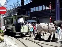 Voiture  du tram de Saint Blaise préservée et utilisée pour les 125 ans du tram de Genève