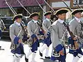 La compagnie franche de la marine exerce son droit de cité dans la vieille ville fortifiée de Québec,