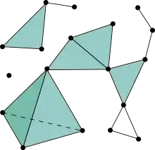 • Plus généralement, pour tout ensemble V et pour tout entier naturel n, l'ensemble 𝒫n(V) des parties de V de cardinal au plus n + 1 forme un complexe simplicial de dimension n.