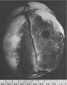 Dans Treatise on the theory and practice of Midwifery, William Smellie observe que durant les accouchements prolongés, lorsque la tête de l'enfant s'est trouvée dans le bassin de sorte que les os se chevauchent les uns sur les autres et que la forme s'est allongée, le cerveau est tellement comprimé que des violentes convulsions surviennent avant ou peu après l'accouchement, et peuvent entrainer le décès de l'enfant[8].