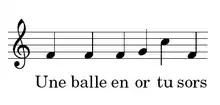 - Une balle en or tu sors (fa, fa, fa, sol, do, fa)