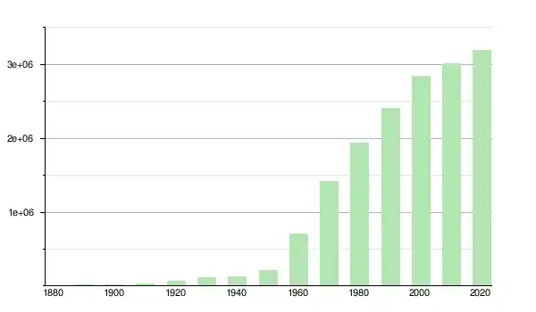 | 1960 | 703 925 | ▲ +225,55 % | |