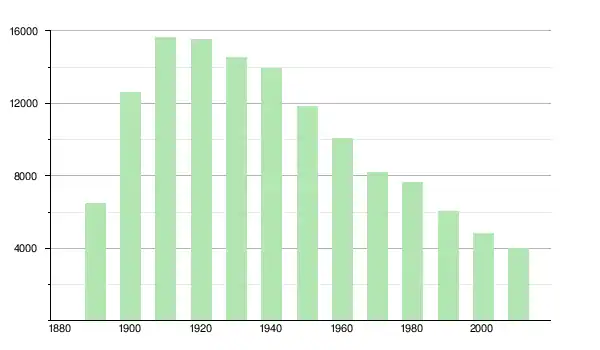 | 1920 | 15 555 | ▼ −0,66 % | |