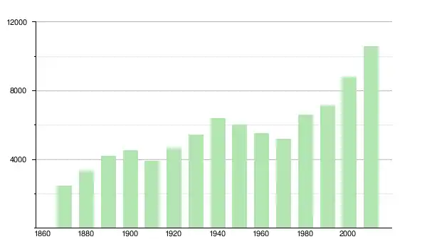 | 1950 | 6 006 | ▼ −6,23 % | |