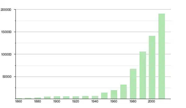 | 1950 | 14 323 | ▲ +121,44 % | |