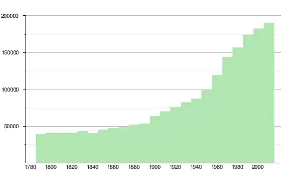 | 1950 | 98 872 | ▲ +13,59 % | |