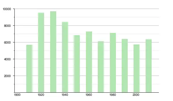 | 1950 | 6 849 | ▼ −18,72 % | |