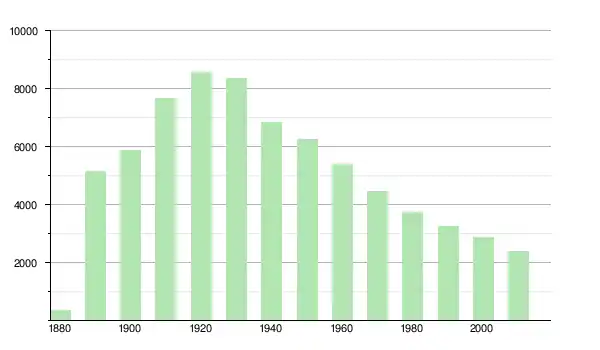 | 1950 | 6 268 | ▼ −8,31 % | |