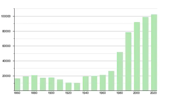 | 1980 | 51 645 | ▲ +96,03 % | |